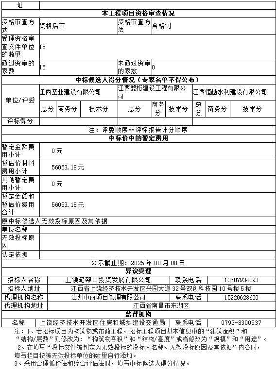 江西省房屋建筑和市政基礎(chǔ)設(shè)施工程施工招標中標候選人公示